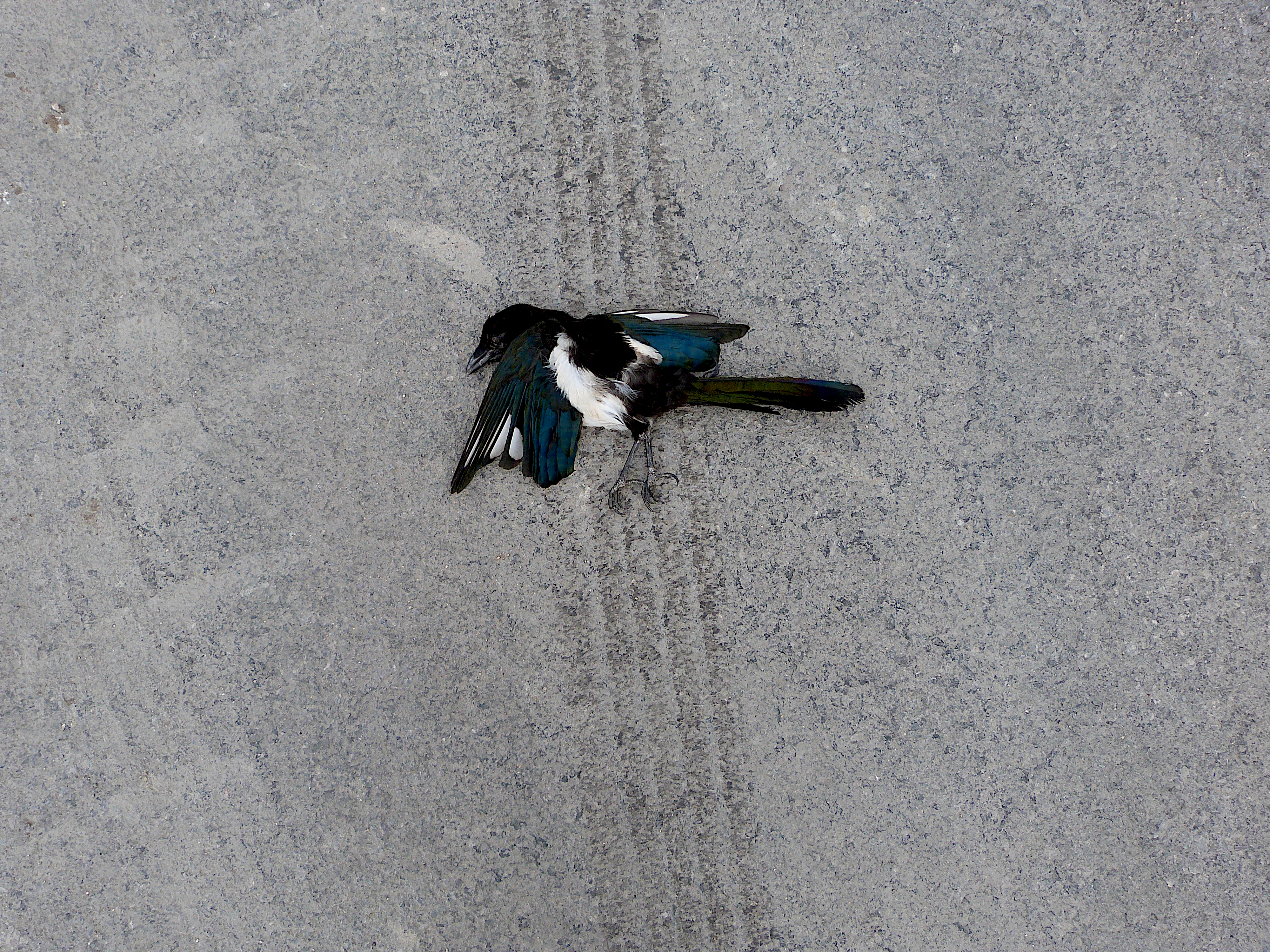 Using a tyre, Two For Joy is a macabre satire where a couple thought to be lucky, clearly aren't and end up as flattened roadkill mixing together depressed omens and haunted travel. Two For Joy was influenced by One for Sorrow, a traditional British nursery rhyme about seeing magpies and their meaning: